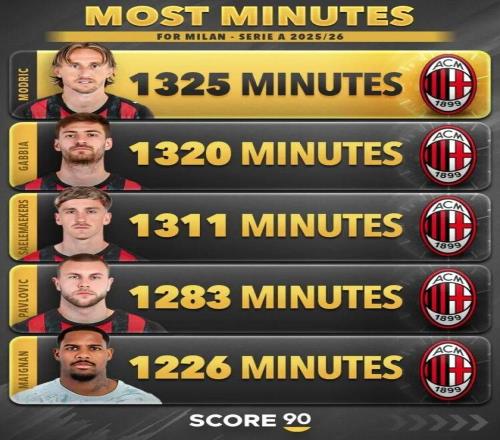 统计丨本赛季米兰球员意甲出场时间榜 米兰圈 2025-12-18 10:51:00 米兰圈Score90统计了米兰球员本赛季意甲出场时间,并列出榜单,40岁莫德里奇1325分钟居首,他仅有25分钟未在场上。 米兰 意甲 莫德里奇 欧洲杯揭幕战 上一篇: 切尔西再遭打击,欧冠客场1比2负亚特兰大 下一篇: 返回列表