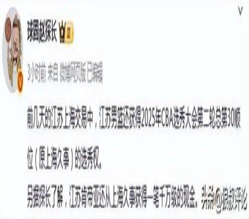 此前,根据媒体人赵探长报道,江苏男篮送走崔晓龙的交易当中,获得了一笔千万级别的转会费。