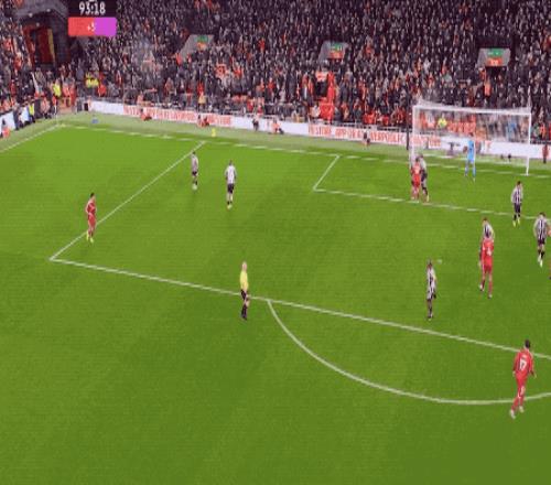 第36分钟,纽卡斯尔的进攻从左路来到右路,戈登的低射,攻破阿利松的十指关。